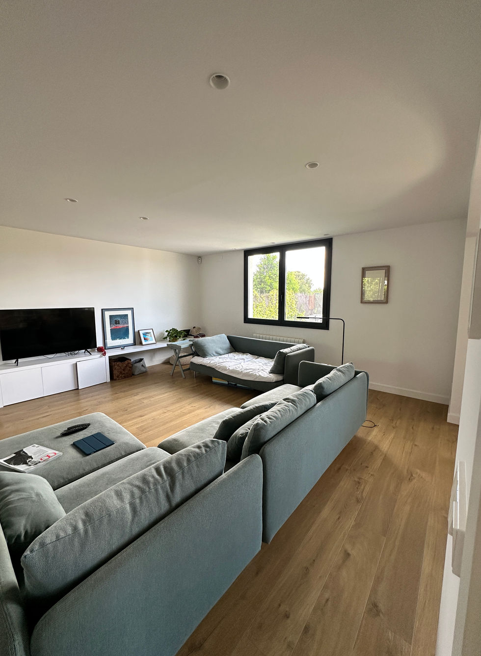 La planta inferior, situada a nivel del jardín trasero, ofrece una gran habitación de invitados, un baño, un salón ideal como zona de juegos o reuniones, y una amplia sala de gimnasio con salida directa a un porche cubierto.